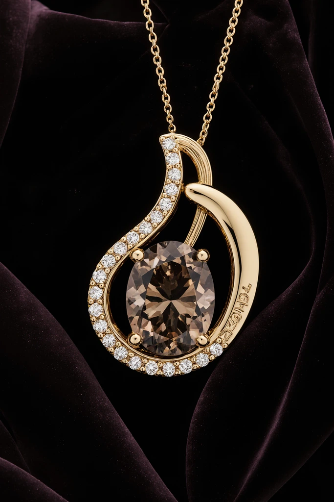 Утонченный кулон, сочетающий в себе изысканность форм и благородство природных оттенков. Это украшение для ценительниц элегантной сдержанности и неброской роскоши.