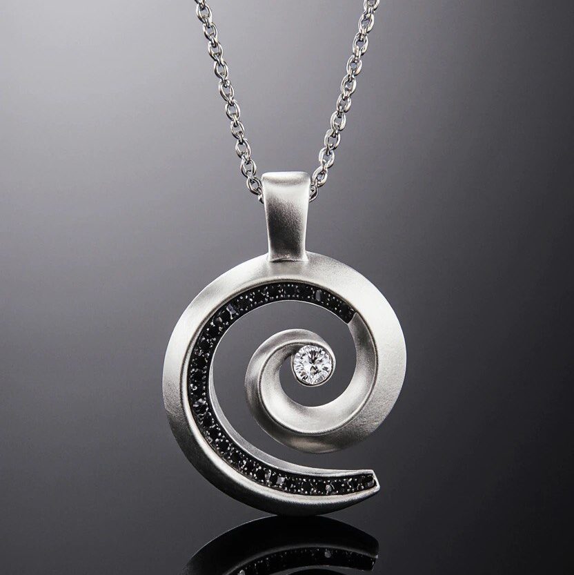 - внешняя часть спирали усыпана чёрными бриллиантами (0,12 ct) — будто ночное небо без звёзд
